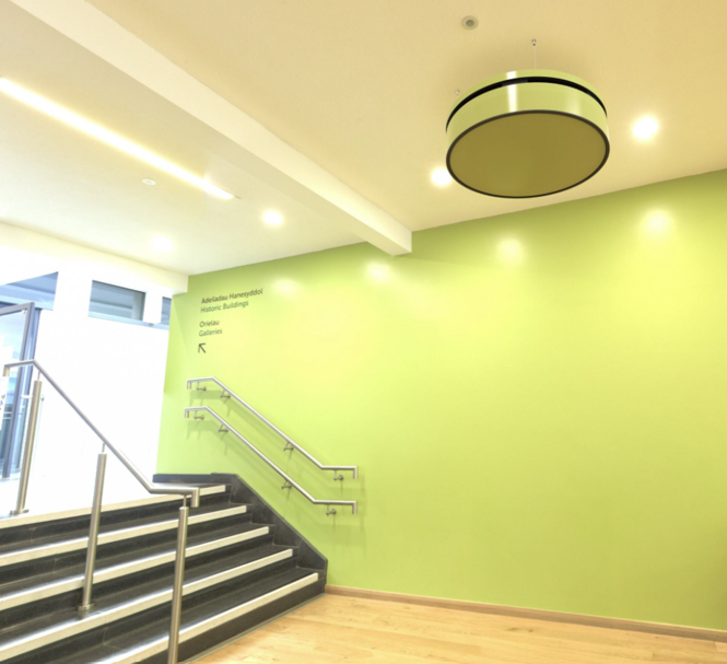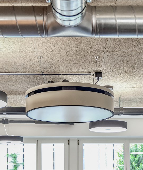 The KaDius can be installed just below the ceiling as a ceiling-suspended unit or integrated as a free-hanging unit within the room. Its outer casing can be easily customised.